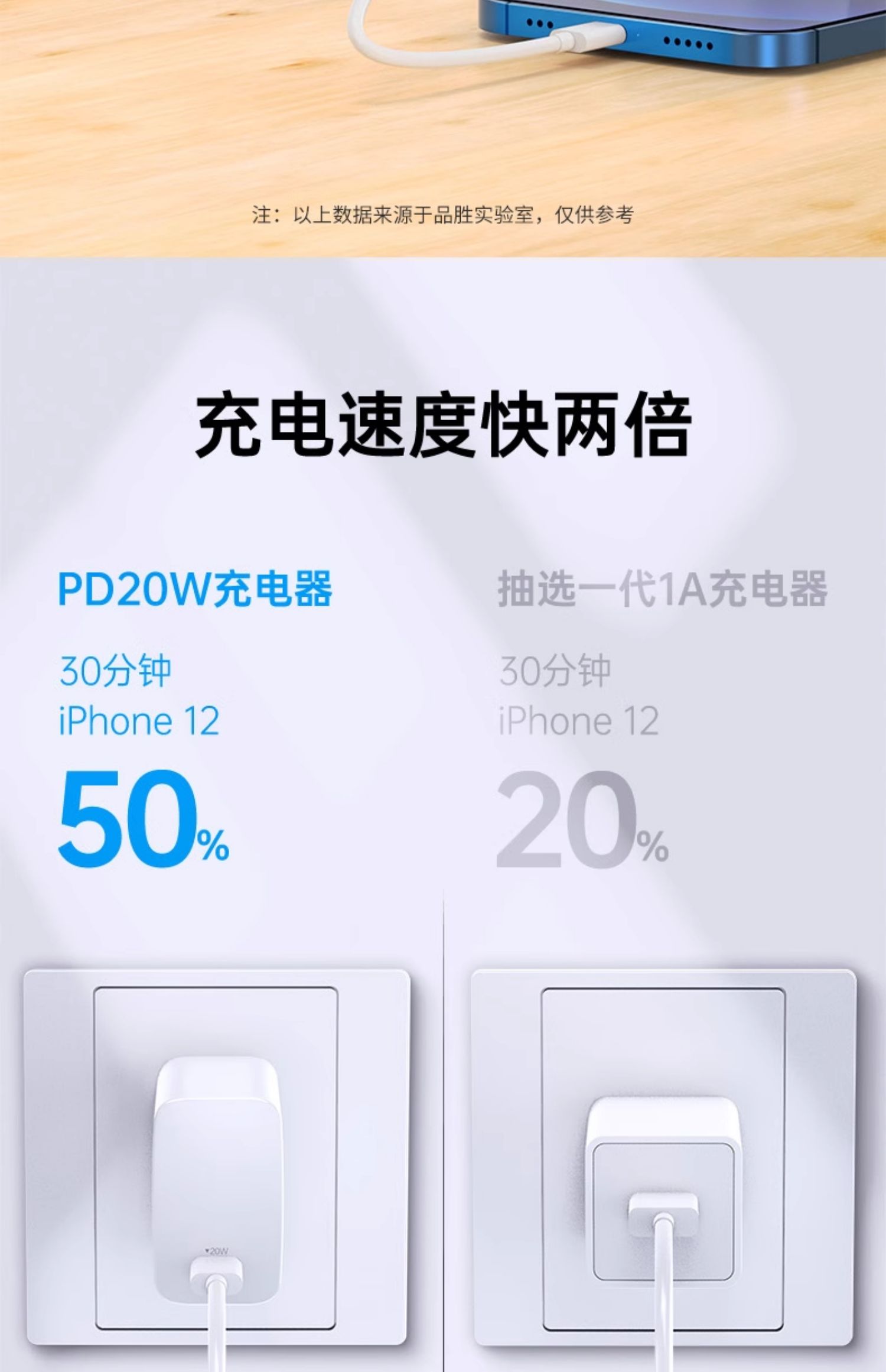 品胜折叠PD20W充电头适用于iphone16苹果15手机充电数据线插头充电器快充