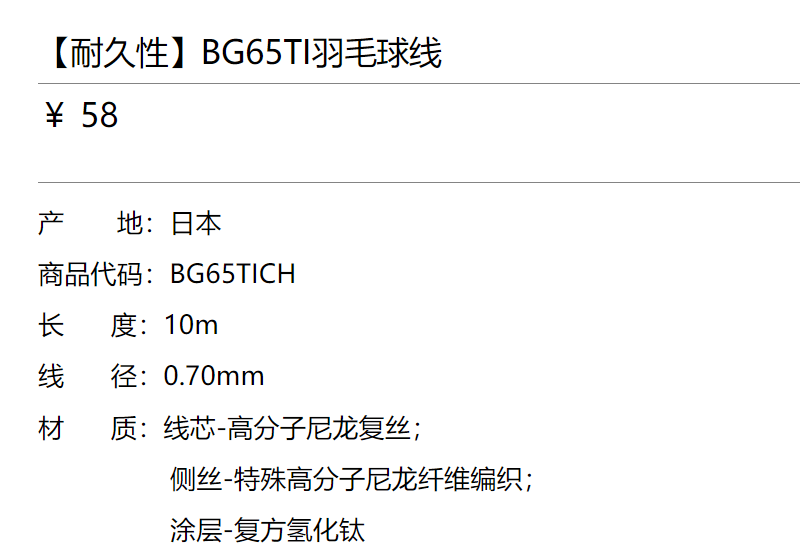 YONEX尤尼克斯yy羽毛球线BG65TI耐打高弹线