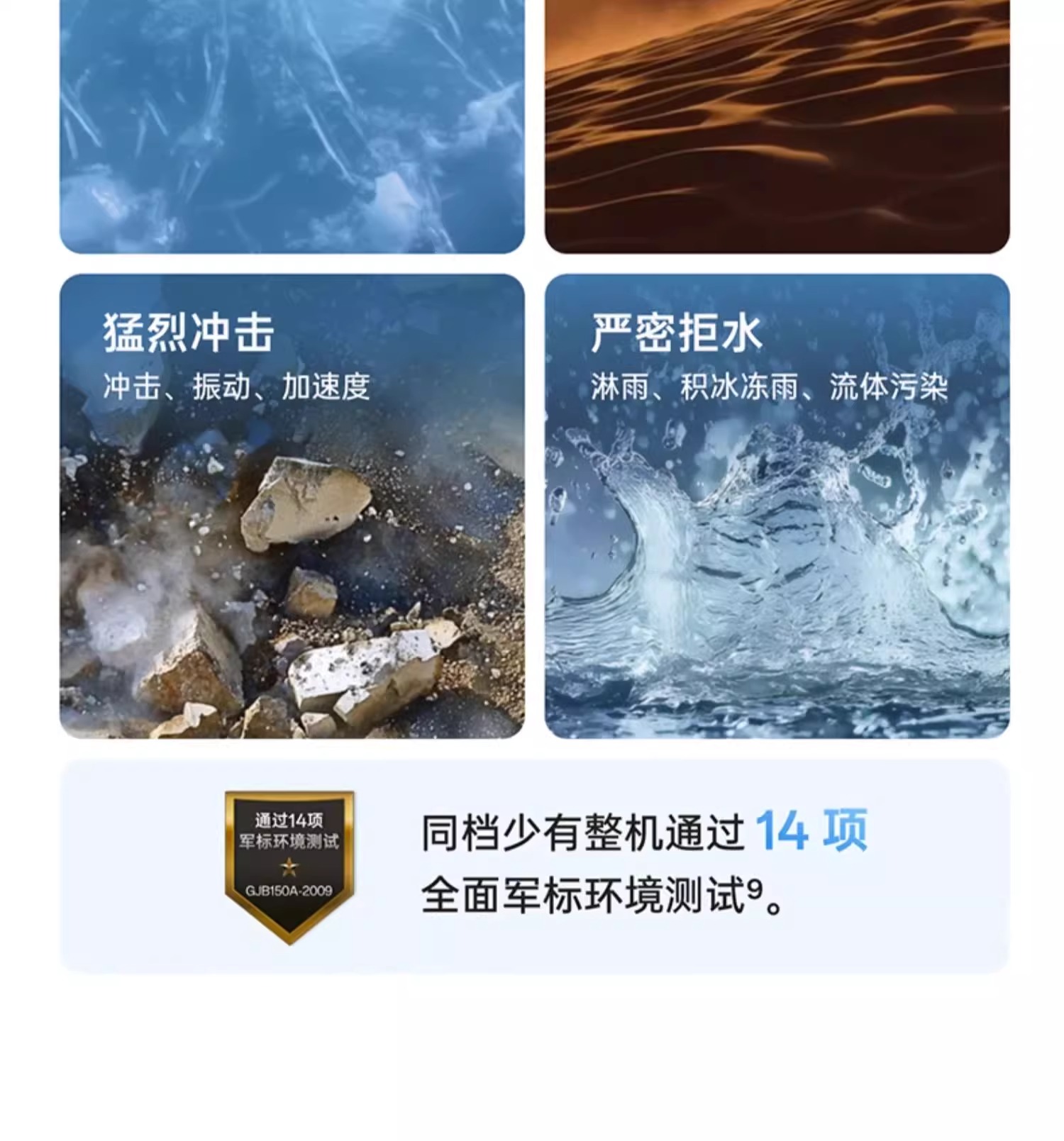 IP69满级防水 信号穿墙王 360°抗摔 6500mah大电池 5000万像素 300%超级大音量 立体双扬声器 超亮阳光屏