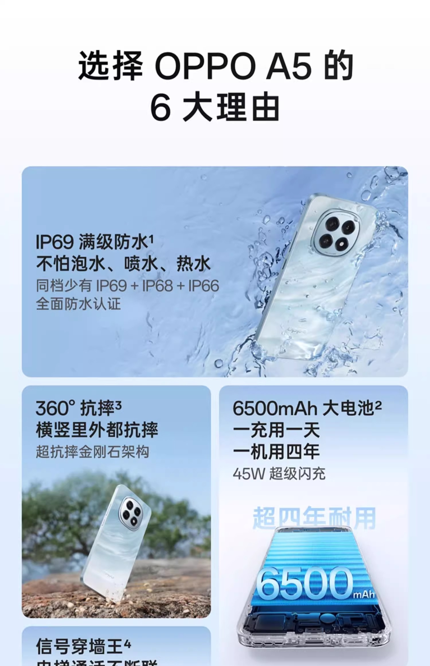 OPPO A5 超防水  超抗摔  超耐用 超级立体大音量5G手机