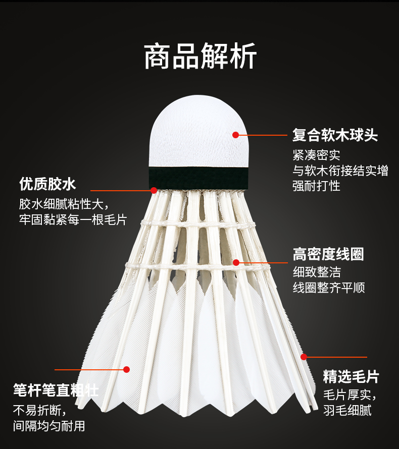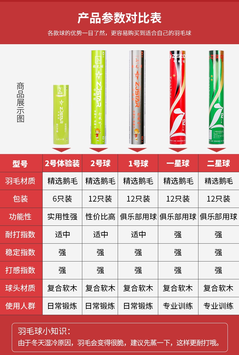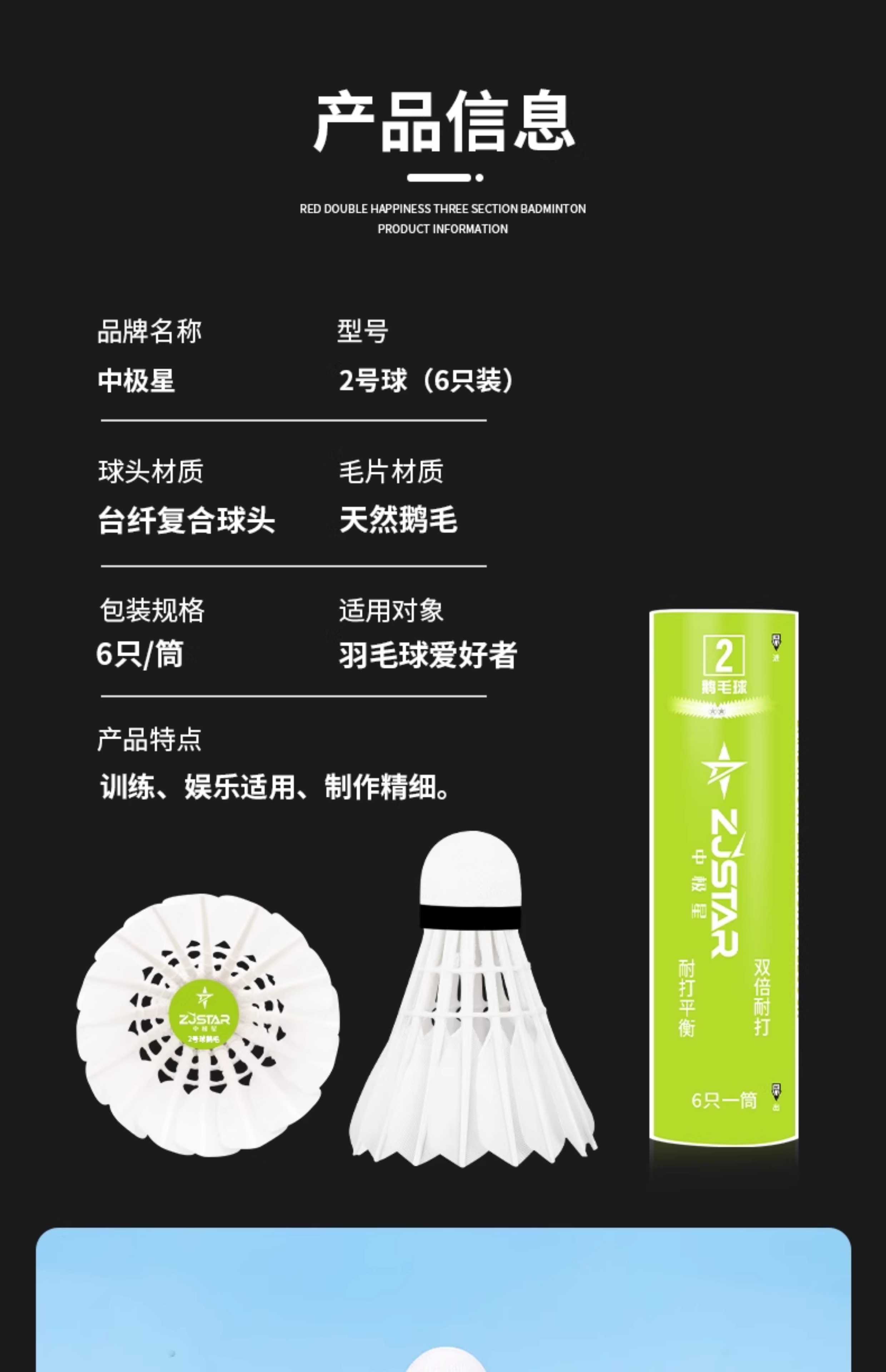 2号羽毛球/中极星/鹅毛耐打王(6只装)