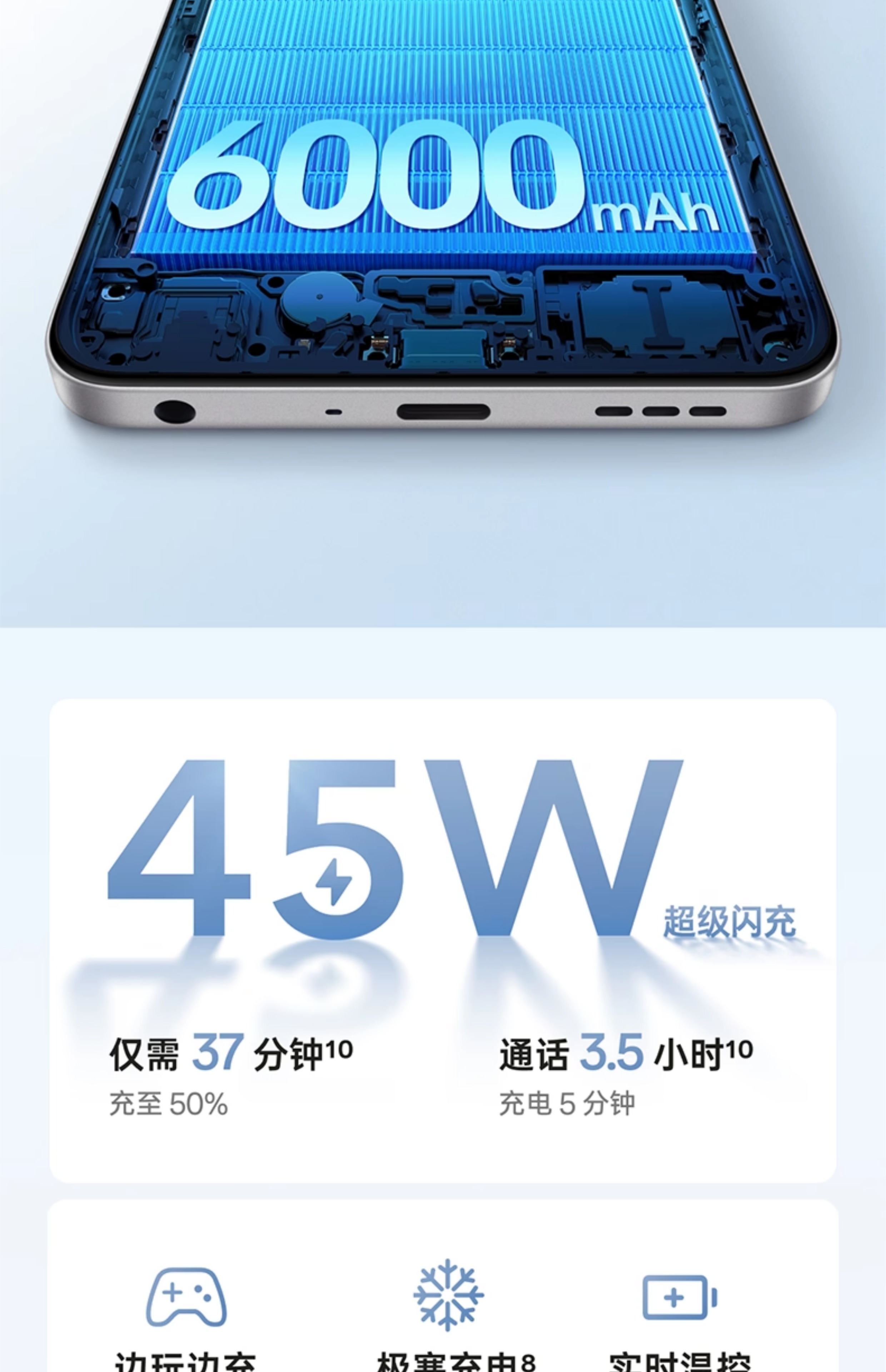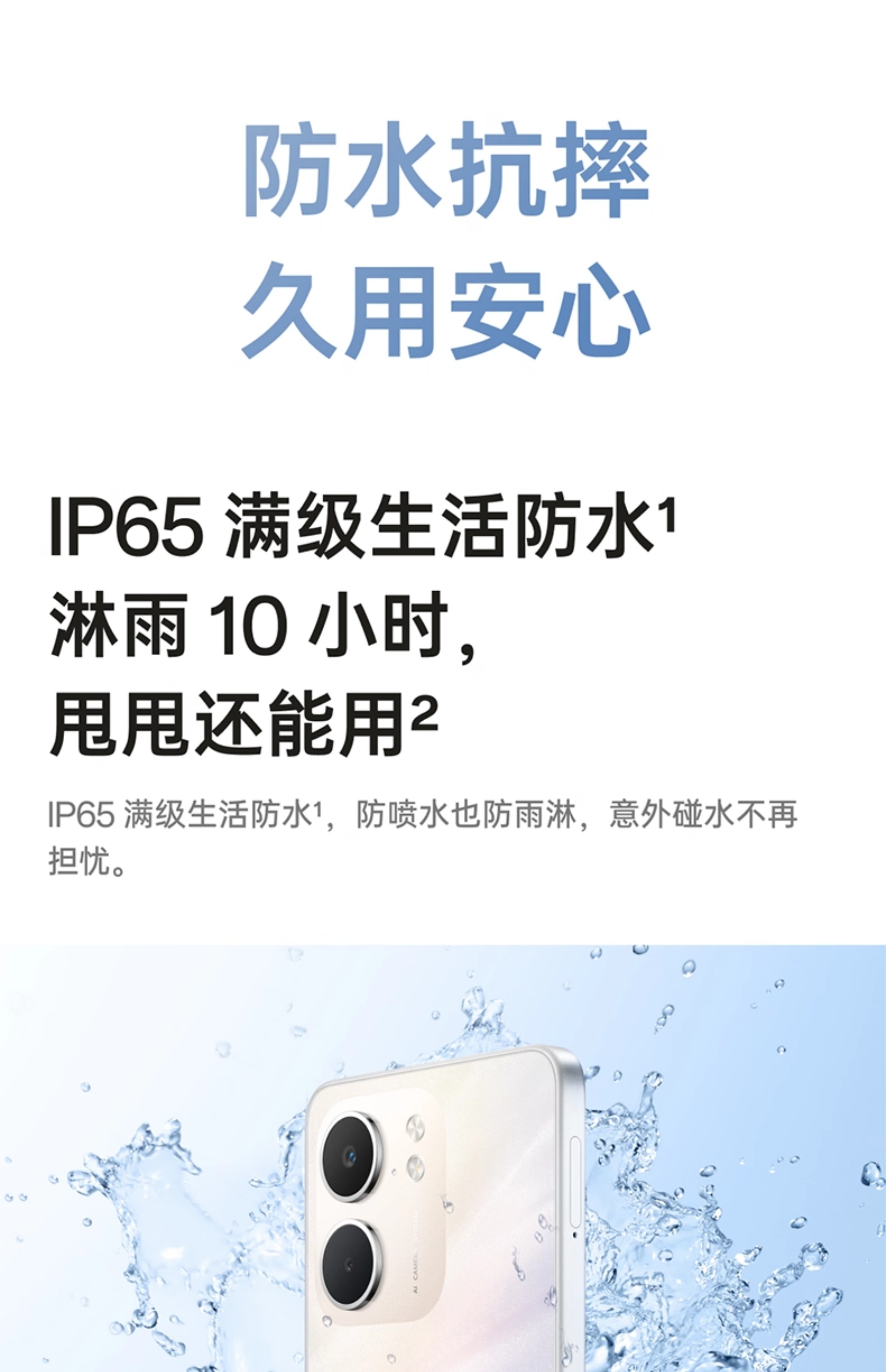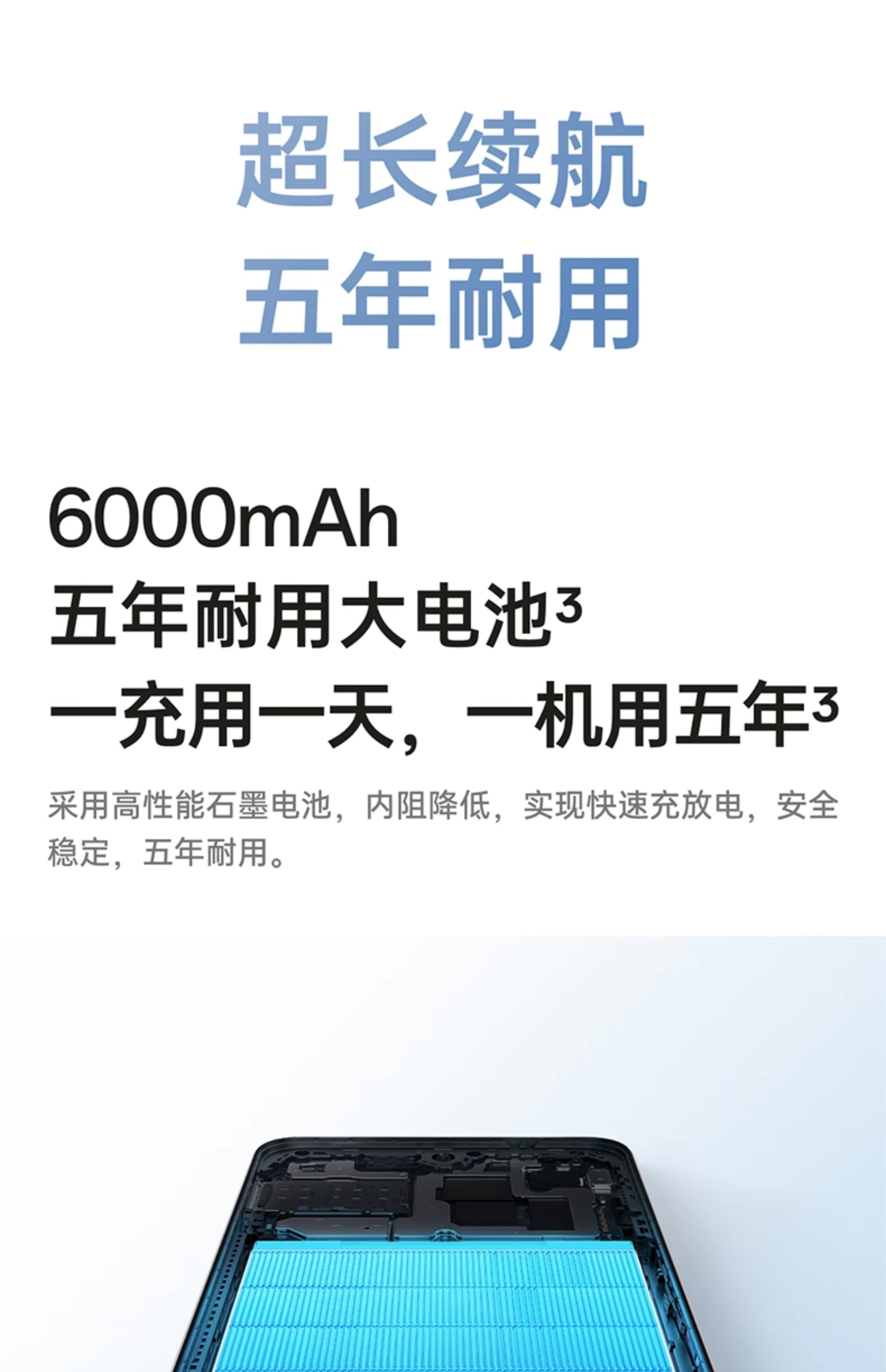 P65满级生活防水 6000mAh五年耐用大电池 360°抗摔 超轻薄直屏