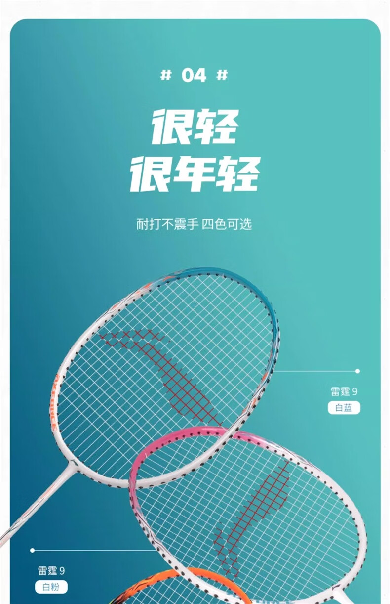李宁羽毛球拍雷霆9铝合金+STD高弹性碳纤维 (荧光正橘)碳复合【单支已拉线】