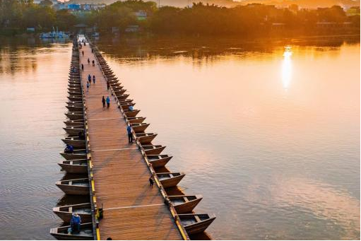 【古浮桥】这个有着80多年历史的古迹,这是一座由10多只小舟板并束之以练绳相连而成的桥,也是赣州古城的重要标志之一。站在古浮桥上,可以依动整个赣州城的美量,感受这座城市的路久历史和文化底蕴;