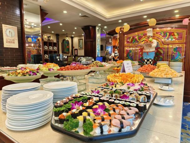 任吃三文鱼海鲜啤酒自助晚餐(位上西洋参炖鲍鱼)